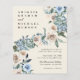 Elegant fall floral wedding invitations featuring cream and blue watercolor flowers framing your wedding details displayed in trendy typography with the names on the left and the details to the right against a beige background. As part of the budget selection here on Zazzle, these invitations come in limited sizes and paper stocks. If you need a different size or paper stock, this design can be transferred to a standard 5x7 format using the design transfer tool for more options.