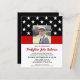 Celebrate your graduation and invite friends and family to your firefighter graduation party with this Thin Red Line Firefighter Graduation Invitation - USA American flag design in Firefighter Flag colours , distressed design . Personalize with photo, name, address venue, and rsvp details. This firefighter graduation invitation can be used for firefighter retirement , simply change the text when personalizing.See our collection for matching fireman graduation gifts, party favours, and supplies. COPYRIGHT © 2020 Judy Burrows, Black Dog Art - All Rights Reserved. Budget Firefighter Graduation Photo Red Invite