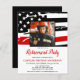 Celebrate your retirement and invite friends and family to your firefighter retirement with this Thin Red Line Firefighter Retirement Invitation - USA American flag design in Firefighter Flag colours , distressed design . Personalize with photo, name, fire department, address venue, and rsvp details. This firefighter retirement invitation can be used for firefighter graduation, simply change the text when personalizing.See our collection for matching fireman retirement gifts, party favours, and supplies. COPYRIGHT © 2020 Judy Burrows, Black Dog Art - All Rights Reserved. Firefighter Retirement Photo Fireman Retiring Invitation