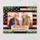 Send Merry Christmas greetings to friends and family with this unique Thin Red Line Firefighter Christmas Card - American Flag in firefighter flag colours, modern black and red with holly leaves and berries on a wood background. Personalize with your favourite family photo and name . These budget merry christmas postcards need to be mailed as oversized postcards so may incur standard postage fees but they don't need an envelope or a return address label. COPYRIGHT © 2020 Judy Burrows, Black Dog Art - All Rights Reserved. Budget Firefighter Thin Red Line Flag Christmas Cards