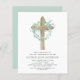 Budget Sage Green Boy's Eucalyptus and Cross Botanical Greenery Watercolor Religious First (1st) Holy Communion Invitations.