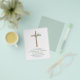Budget Sage Green Girl's Eucalyptus and Cross Botanical Greenery Watercolor Religious First (1st) Holy Communion Invitations.