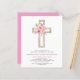 Budget Pastel Pink, Orange and Purple Floral Rose Flowers Cross Botanical Watercolor Religious First (1st) Holy Communion Invitations.
