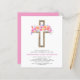 Budget Pastel Pink, Orange and Purple Floral Rose Flowers Cross Botanical Watercolor Religious First (1st) Holy Communion Invitations.