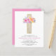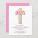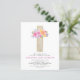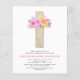 Budget Pastel Pink, Orange and Purple Floral Rose Flowers Cross Botanical Watercolor Religious First (1st) Holy Communion Invitations.
