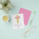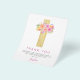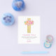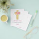 Budget Pastel Pink, Orange and Purple Floral Rose Flowers Cross Botanical Watercolor Religious First (1st) Holy Communion Thank You cards.