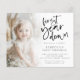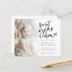 Budget First Year Down Photo Overlay 1st Birthday. A budget price smaller 4.5 x 5.6” on a 110lbs semi-gloss. A set script for the main header and the rest of the text you can easly personalise. Replace the sample picture with your own favourite.