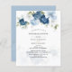 Customize this budget rehearsal dinner wedding invitation card by clicking the "Personalize" button above. The card features a modern elegant chic dusty blue flowers with white, light blue, and olive green bloom.