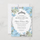Modern Glam Floral Botanical Light Pastel Baby Dusty Blue Silver Grey Tiara Sparkle Glitter RSVP Birthday Quinceañera Invitation