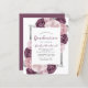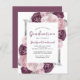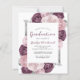 This design features lush bouquets of mauve and blush with silver foliage adorning a silver faux foil rectangular frame. Customize the charcoal grey and mauve text on a white background with the graduate's name and party details. The back of the card is a matching shade of solid mauve.