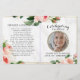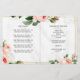 Customize this modern, elegant funeral program with your own photo and text to create a special tribute to your Beloved. An 'In Loving Memory' program featuring a Floral rosy with gold accent memorial program. On the front cover is a photo of your loved one, their name, dates, the memorial venue, and the date of the event. On the inside is an obituary and order of service, and on the back is a thank you note and the venue of the
