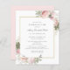 Elegant celebration of a life invitation features two pink rose floral arrangements decorating a gold frame. The deceased person's name is written in a traditional script text. All of the text can be easily edited to create a personal remembrance.
