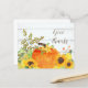 Rustic fall card with watercolor pumpkin, sunflowers, and the phrase “Give Thanks.” Perfect for Thanksgiving, autumn gatherings, or sending seasonal gratitude. A cozy farmhouse-inspired design for family, friends, or hostess notes. Easily personalize the back of the card with just a few clicks.