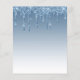 This trendy 40th birthday invitation features a sparkly blue faux glitter drip border and blue ombre background. The words "40th Birthday" and the name of the guest of honour appear in casual blue handwriting script, with the rest of the customizable text in blue sans serif font. The same blue glitter drip design appears on the reverse side.
