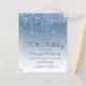 This trendy 70th birthday invitation features a sparkly blue faux glitter drip border and blue ombre background. The words "70th Birthday" and the name of the guest of honour appear in casual blue handwriting script, with the rest of the customizable text in blue sans serif font. The same blue glitter drip design appears on the reverse side.