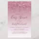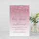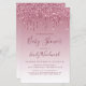 This trendy baby shower invitation features a border of sparkly burgundy dripping faux glitter on a burgundy ombre background. The words "Baby Shower" and the name of the mom-to-be appear in burgundy handwriting script, with the remaining text in sans serif font.