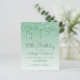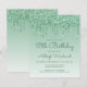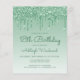 This trendy 18th birthday invitation features a sparkly green faux glitter drip border and green ombre background. The words "18th Birthday" and the name of the guest of honour appear in casual green handwriting script, with the rest of the customizable text in green sans serif font. The same green glitter drip design appears on the reverse side.