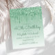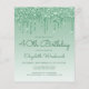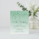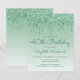 This trendy 40th birthday invitation features a sparkly green faux glitter drip border and green ombre background. The words "40th Birthday" and the name of the guest of honour appear in casual green handwriting script, with the rest of the customizable text in green sans serif font. The same green glitter drip design appears on the reverse side.