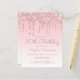 This trendy 30th birthday invitation features a sparkly pink faux glitter drip border and pink ombre background. The words "30th Birthday" and the name of the guest of honour appear in casual pink handwriting script, with the rest of the customizable text in pink sans serif font. The same pink glitter drip design appears on the reverse side.