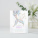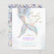 The back of the invitation features a beautiful pattern of mermaid scales in soft pastel colours, accented with shimmering gold, adding a touch of elegance and whimsy to the overall desig