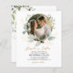 Design feature greenery eucalyptus watercolor with floral gold glitter border with photo. Using elegant calligraphy font in gold colour for the name of the bride and groom that makes it stand-out.