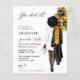 African American Grad Girl Nurse Medical School with Gold and Black Balloons Custom Year Modern Minimalist Photo She Did It Nursing School Medical School Graduation Invitation