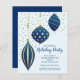 Small 4.5" x 5.6" invitations feature dark blue and gold Christmas tree ornaments and your holiday Christmas party details in chic lettering on a pale blue background. These affordable invites are printed on 110 lb semi-gloss cardstock available in 3 sizes. **White ENVELOPES ARE OPTIONAL and can be added to your order at an additional cost. Be sure to double-check your order before adding it to your cart as what you see on the screen is what will be printed. The Live Design Service can help you with your design layout if needed. MATCHING items in our store.