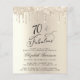 Elegant, chic and budget-friendly 70th birthday party invitation with "70 & Fabulous" written in stylish script against a gold background, with gold faux glitter dripping from the top.