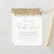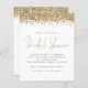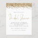 A value for money BUDGET alternative on a smaller size 4.5 x 5.6” semi-gloss 110lbs weight, which is of similar thickness to a postcard (however is not suitable to use as a postcard.). PLEASE NOTE there is ONE invite per sheet. Budget Gold Glitter Bridal Shower Invitation. Glam elegance with a faux glitter border at the top on both sides and occasion header in a set informal script. Easily personalise the rest of the text to your own details.