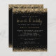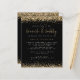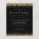 Gold Glitter Brunch Bubbly Bridal Shower Black. A budget friendly SMALLER 4.5” x 5.6” alternative. Available in a SEMI GLOSS 110 lb CARD STOCK or a SATIN FINISH 80 lb THINNER PAPER STOCK. Envelopes are an optional extra. Borders at the top and bottom on each side in gold faux glitter. Brunch & Bubbly is set in a modern handwriting style. Easily personalise the rest of the text to your own.
