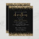 A budget price SMALLER 4.5” x 5.6” alternative. Available in a SEMI GLOSS 110 lb CARD STOCK similar in thickness to a postcard. There is ONE per sheet. Gold Faux Glitter Christmas Party Black Invite. A glam glitter border is on each side top and bottom, and Christmas is in a set lowercase handwriting style script. Easily personalise the text to your own details. You can also change the text and background colours via the customise further option if you wish.