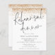 A budget price SMALLER 4.5” x 5.6” alternative. Available in a SEMI-GLOSS 110 lb CARD STOCK which is the default option (thicker for invitations), OR a SATIN FINISH 80 lb THINNER PAPER STOCK (ideal for enclosures). Envelopes are an optional extra and are slightly larger than the card size, This modern design has elegant informal set script for Rehearsal Dinner and a border of gold faux glitter at the top on each side. The rest of the typography you can easily personalise. You can also change text and background colours on either side if you wish via the Customize Further option.