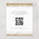 A value for money BUDGET alternative on a smaller size 4.5 x 5.6” semi-gloss 110lbs weight, which is of similar thickness to a postcard (however is not suitable to use as a postcard.). PLEASE NOTE there is ONE invite per sheet. Gold Glitter Borders Script Wedding White QR Code Save The Date. Add your QR code to your wedding website on the back by replacing the QR code on the sample. You can create QR codes for free online. Simply search “QR code creator” and lots of options come up to create for free. Gold faux glitter borders the top and bottom edges and an elegant set script for Save Our Date. Easily personalise the rest of the text to your details.