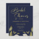 Elegant classy chic faux gold calligraphy script moody dark midnight navy blue BUDGET affordable bridal shower invitation with botanical garden watercolor neutral sage green foliage. ++++++ Suitable for elegant vintage style bridal shower celebrations.++++++++++ Please note that the background colour on both sides is editable. You can change it after selecting CUSTOMIZE option. If you need help, you can use Live Design Service free of charge. ++++++++++ PLEASE READ THIS BEFORE PURCHASING! This is a budget affordable wedding card printed on a paper sheet (each sheet has one card). ++++ For the best rapport price-quality, our advice is to choose the Semi-Gloss paper type (it is thick enough to be used for stationery) ++++ If you need envelopes, choose the ENVELOPE OPTION. +++ Double-check all the information and spelling of your text because you will receive exactly what you see - no one else will check anything before printing. ++++ This card is designed for size 4.5" x 5.6". In the case you choose another size of the card and text goes outside page, everything needs to be fixed before adding the product to cart. Please ask Live Design Service for help.