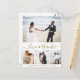 Elegant Budget "Love and Thanks" Hand Lettered Script Heart Elegant, Minimalist Photo Collage Affordable Wedding Thank You PostCard in Gold and White. Simple wedding card template featuring four (4) photo on the front and one photo on the back side. With the text "Love and thanks" in a pretty hand lettered swash tail typography script font. Add your name and thank you message.