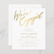 Simple minimal chic whimsical faux gold calligraphy clear white we're engaged script BUDGET AFFORDABLE engagement party invitation.