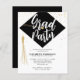 Modern GRAD Hat Cap Black Gold Graduation Party Invitation