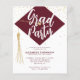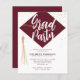 Modern GRAD Hat Cap Burgundy Maroon Red Gold Graduation Party Invitation