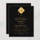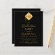 An elegant, simple invitation card for a 2023 (or any year) graduation party for both him and her. A black background and a modern black abstract tassel topper in faux gold with the year inside. Personalize and add a name and party details. The text Graduation and the name are written with modern handlettered style script. Golden colored text.