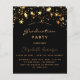 A glamourous invitation card for a 2025 (or any year) graduation party for both him and her. A black background decorated with faux gold stars. Personalize and add a name and party details. The text Graduation and the name are written with modern hand lettered style script. Golden coloured text.