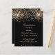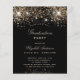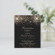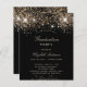 A black background decorated with faux glitter and sparkle. The name is written with a modern golden coloured hand lettered style script. Personalize and add your party details.