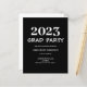 Simple budget graduation party invitation. Easy to add your information from the product page. White typography on a black background. The paper sheet is thinner than the card paper.