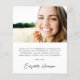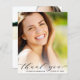 A budget-friendly graduation thank you card featuring the graduate's photo overlayed with "thank you" in a stylish script and their name and class year in modern typography. On the reverse side, add an additional photo, personalize a thank you message and add their name in a signature-like script.