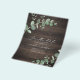 budget Eucalyptus Greenery foliage modern minimal garden party Wedding save the date Invitations. Simple contemporary botanical design. dark wood and sage green backer.