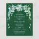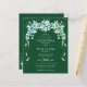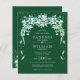 BUDGET White floral cascading garland emerald green wedding Invitation. A beautiful white cascading garland adorns this wedding invitation with gold confetti.