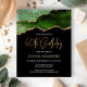 This trendy 60th birthday invitation features a watercolor image of an agate geode in shades of green with faux gold highlights. The words "60th Birthday" appear in faux gold glitter in decorative modern handwriting font. Customize it with the name of the honoree in gold coloured text and the details in white. The same green agate image appears on the reverse side.