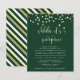 Budget Green Gold Confetti Surprise Birthday Party Invitations by Eugene Designs. Send these elegant emerald green and gold invitations and start your surprise party with a modern message. On the front, in stylish handwritten style script are the words "shhh.. it's a surprise" in faux gold foil. On the reverse, there are sleek diagonal stripes in the same golden brown colours as the polka dot confetti on the front. Blocked white serif fonts communicate the details of your surprise party with maximum clarity.