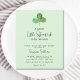 This budget Baby Shower Invitation is decorated with a watercolor shamrock and stylish script typography on a green background. Perfect for a St. Patrick's Day or March baby shower.