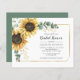 Sunflower Script Eucalyptus Floral Bridal Shower Invitation. Featuring a beautiful rustic floral bouquet, geometric gold effect frame, with modern simple typography.