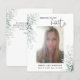 Express votre sincère gratitude pendant une période de perte avec notre Carte de remerciements funéraire de photos Budget Greenery. Cette carte élégante est conçue pour transmettre votre appréciation aux amis et à la famille qui ont offert leur soutien et leurs condoléances pendant une période difficile. La carte présente un motif de verdure délicat, offrant une façon sereine et belle de remercier ceux qui vous ont soutenu. Les couleurs vertes douces et douces et les illustrations feuillues vertes raffinées créent une esthétique réconfortante et respectueuse. À l'intérieur, vous trouverez un message de gratitude soigneusement élaboré, avec suffisamment d'espace pour ajouter votre note personnalisée. Le message est conçu pour vous remercier sincèrement et vous remercier pour le soutien et la sympathie que vous avez reçus.